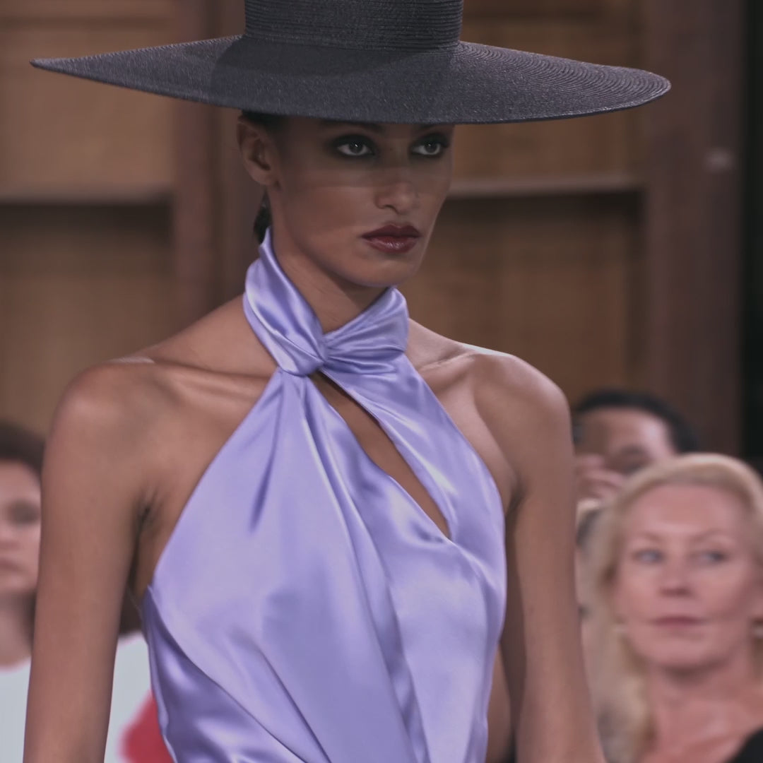 An elegant exploration of draped silk satin, this long gown features a draped halterneck, with cut out opening, an open back and high slit. ◊ The draped construction is revolving around a knotted point at the front waist, holding the draped wrap skirt in place. ◊ This gown is crafted in a heavy silk satin, elevated by its organic silk composition.